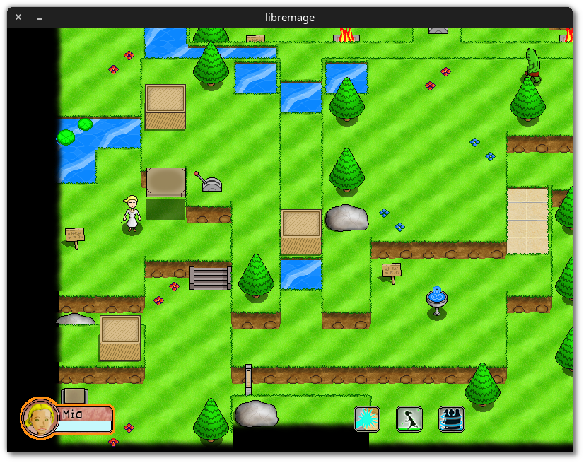 📚️ LibreMage is a libre puzzle game featuring two female magicians and their teacher who are trying to reach one of their colleagues who is plotting to conquer the world, holed up in his castle. Each character takes a different route to get there (the gardens, the underground passages, and the north). The player can switch between characters, use objects, and cast a teleportation spell that allows two mages to summon the third, as well as two specific spells (Mia masters telekinesis and the magic path that allows collapsed floors to be rebuilt, Metodej masters the fireball that melts ice and the cloak of fire that protects against fire, Professor Starovous masters the ghost-killing light and the regeneration of another mage)...