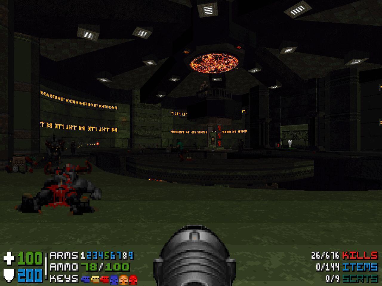 Now it has UDMF support and a dynamic weapon and inventory system. It supports linked portals for full room-over-room gameplay. Current major goals for the engine include completing support for Heretic.