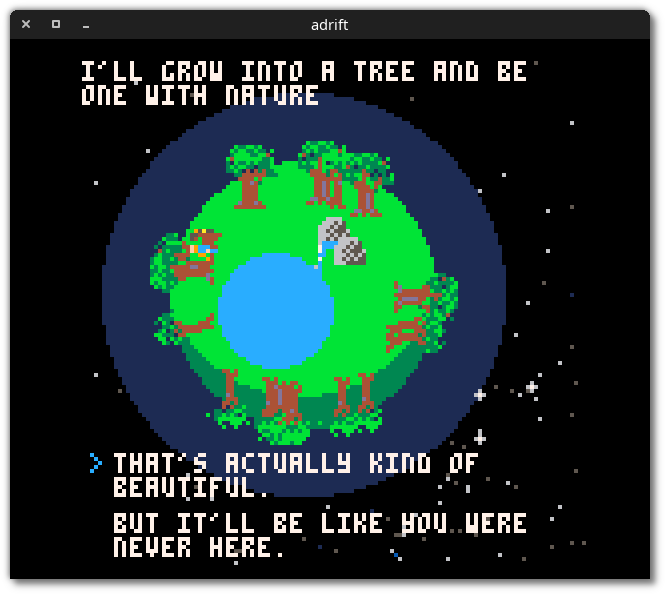 • ADrift (HTML5 version, free): [Homepage] [Dev site] 🎬️ g(202xxx)