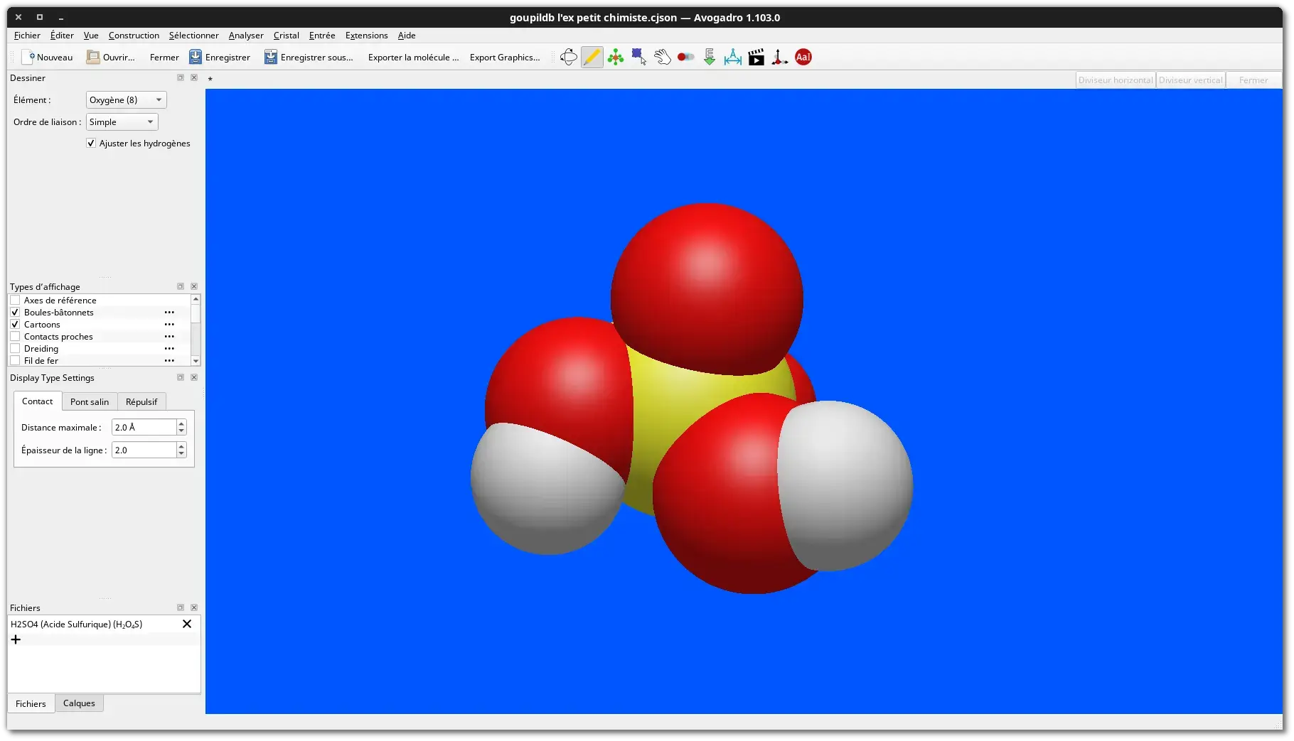 ⚪️ Pour la copie d'écran j'ai tenté de reproduire la molécule H2SO4 (acide sulfurique, je me suis aidé de la représentation de la page Wikipédia ;).