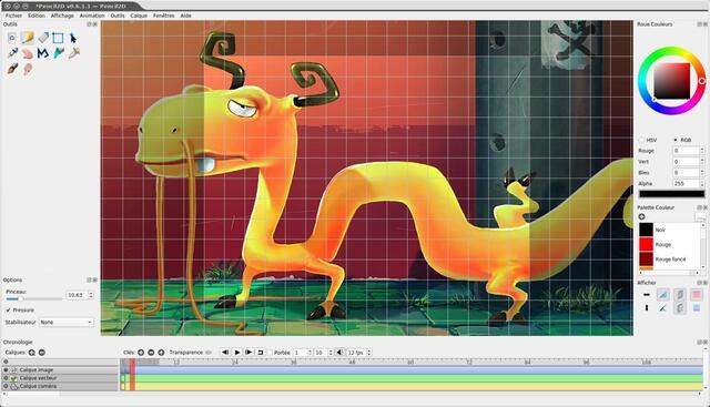 | Pencil2D | Development; Content Creation; Motion Graphics; Animation; Image Manipulation; Raster graphics editor; Vector graphics editor | 🕊️ Libre | A libre, multi-platform 2D animation tool (motion design), light and easy to use, for creating hand-drawn 2D animations in bitmap or vector format, combining images, sound and even video. Its interface enables drawing with the mouse or stylus (which manages stylus pressure), using the usual tools (pencil, eraser, etc.). The animation is obtained by drawing the images that will form it, combined in the form of layers with sound and the camera (which manages translation, rotation and zoom movements). Numerous graphic, sound and video formats are supported. | Un outil libre et multiplateforme d'animation en 2D (motion design), léger et facile à utiliser, pour réaliser des animations 2D dessinées à la main au format bitmap ou vectoriel, combinant images, sons et même vidéos. Son interface permet le dessin à la souris ou au stylet (gérant la pression du stylet) avec les outils habituels (crayon, gomme, ...). L'animation est obtenue en dessinant les images qui la formeront, combinées sous forme de calques avec le son et la caméra (gère les déplacements de la prise de vue par translation et rotation, et le zoom). De nombreux formats graphiques, sonores et vidéos sont pris en charge. | Latest: 0.6.6➜0.7.0 / Dev: 4c63407 | 2025-06-18 | ||