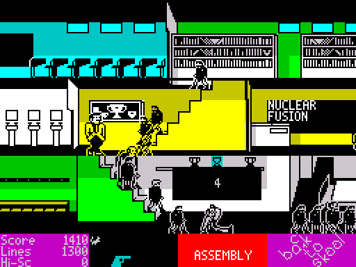 Un remake des jeux 'Skool Daze' et 'Back to Skool' (la suite de 'Skool Daze') sur ZX Spectrum, par Richard Dymond (skoolkid).